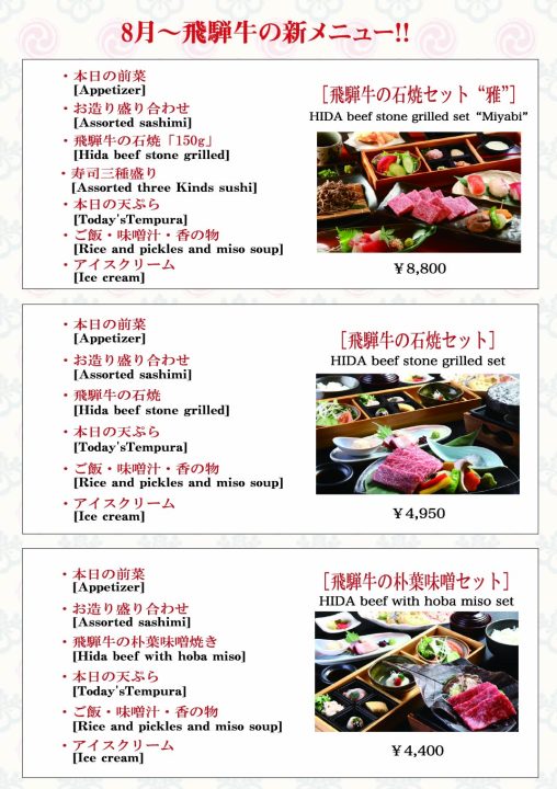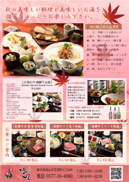 you will feel the pleasures of Takayama's table.